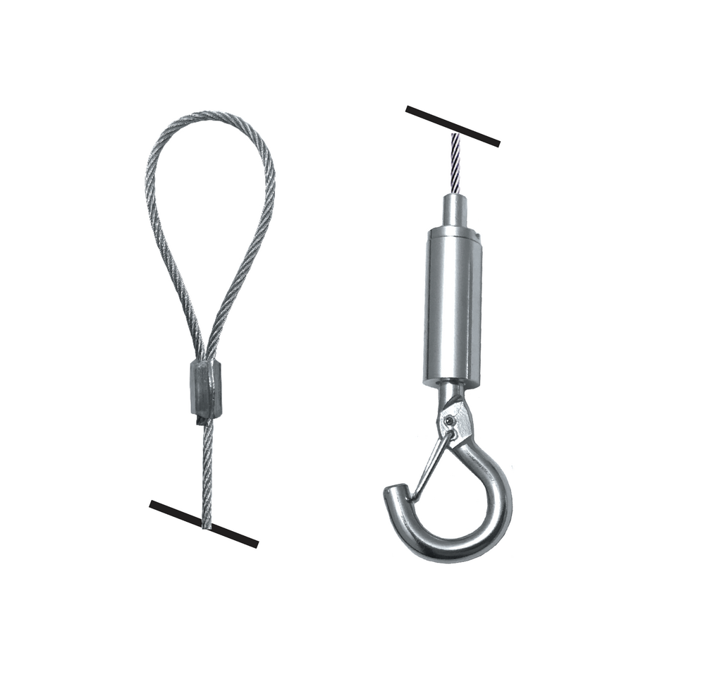 Le Support Suspendus Crochet / Boucle fourni par Mustang Systems est adaptés à la suspension de structures et panneau signalétique, décoration ou l’enseigne et les systèmes d’éclairage.