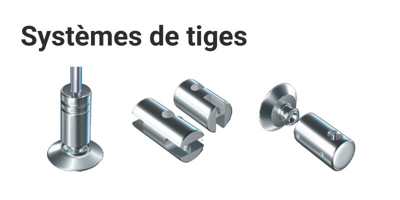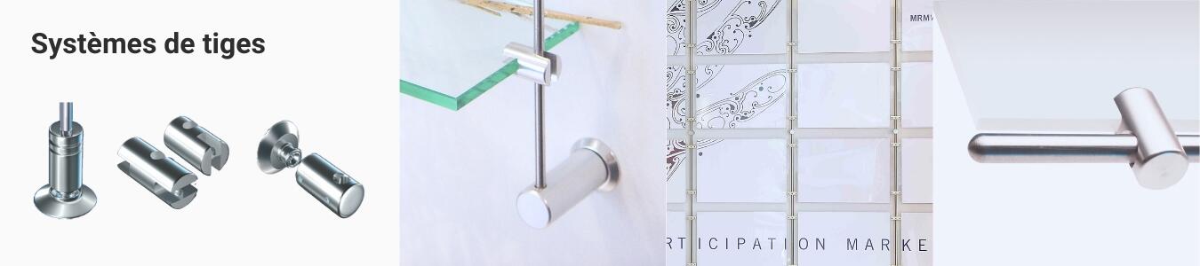 La tige inoxydable 4'11" (1.5m) ∅ 6mm permet de fixer les panneaux et les étagères sur les murs et les vitrines.