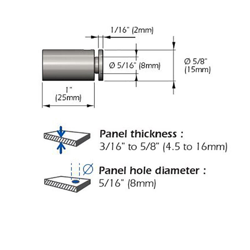 Entretoises Murales (Anti-Vol) – ∅ 16mm (5/8″) Projection 25mm (1″)