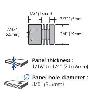 – Perçage du panneau; ∅ 9,5mm (3/8″)