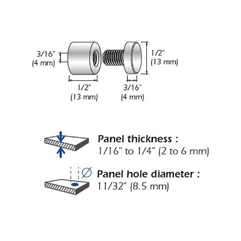 Les Entretoises Murales (Filetées) fournies par Mustang Systems sont fabriquées en aluminium avec une finition anodisé. La fixation murale vissée (entretoise) est livré avec 2 rondelles en silicone et idéale pour fixer un panneau de verre.