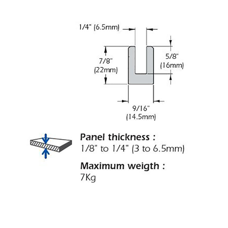 – Épaisseur du panneau; 3mm to 6,5mm (1/8″ to 1/4″)