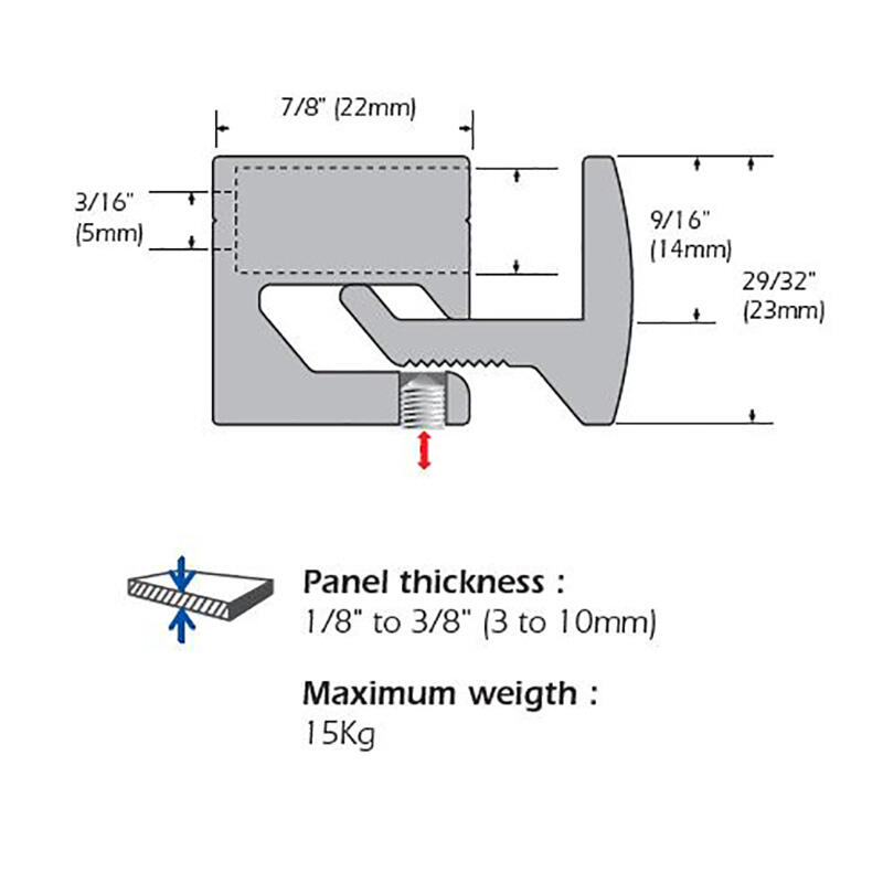 – Épaisseur du panneau; 3mm to 10mm (1/8″ » to 3/8″ »)